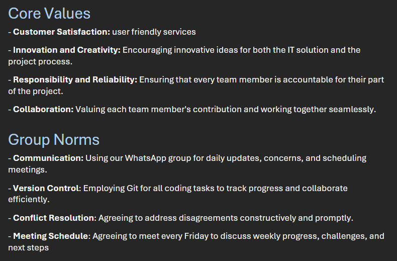 First we get to know each team member to have a starting view on how things will move. Set rules, agreements and core values that we have to follow and that all of us agree upon.